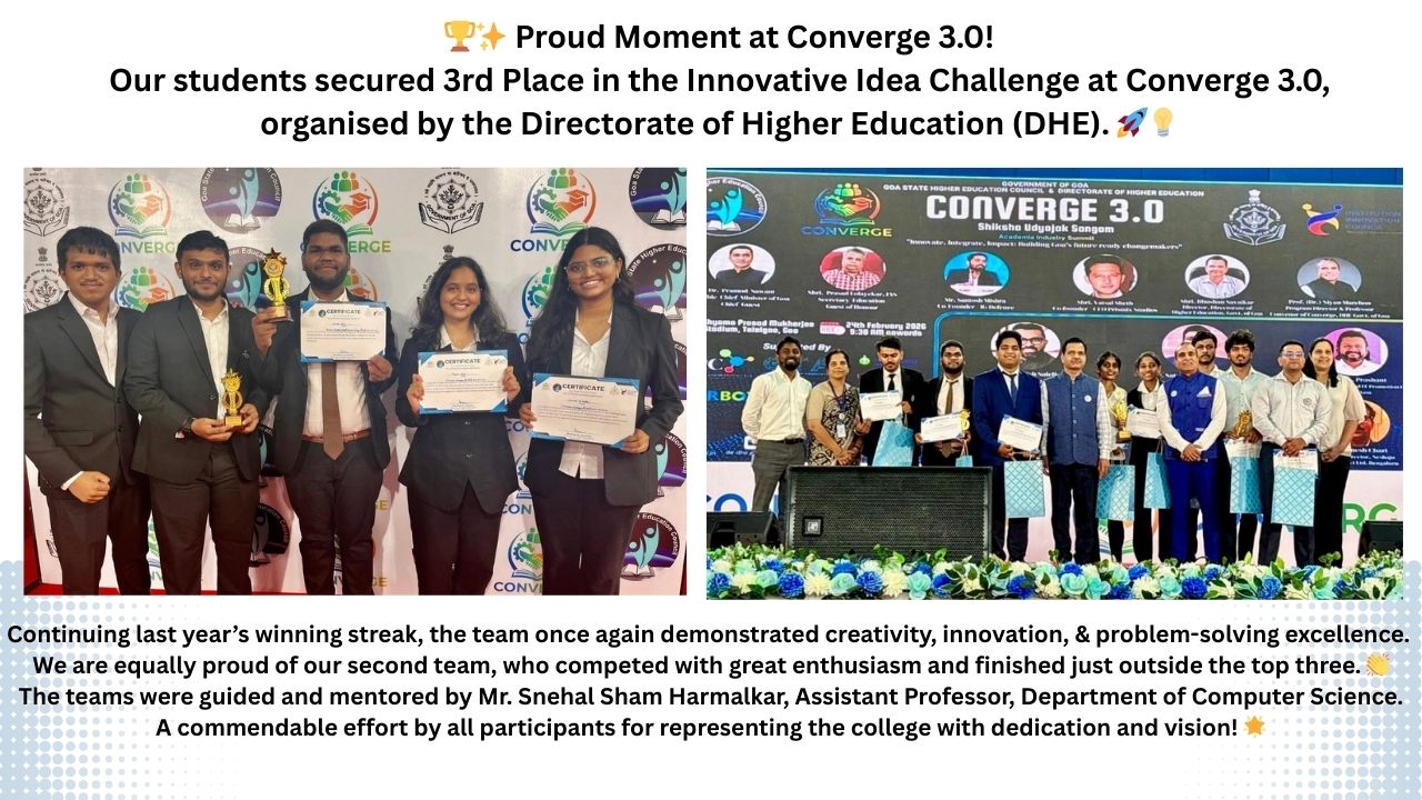 1. Dhempe College of Arts & Science established in 1962 and is located at Miramar. (NAAC accredited ‘A’).