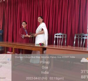 Department of Chemistry and Health Centre of our College organised a talk on the theme “Nourish to Flourish” to celebrate Poshan Pakhwada, an initiative of Ministry of Women & Child Development. The resource person was Ms. Varsha Naik, Assistant Professor, Goa College of Home Science.