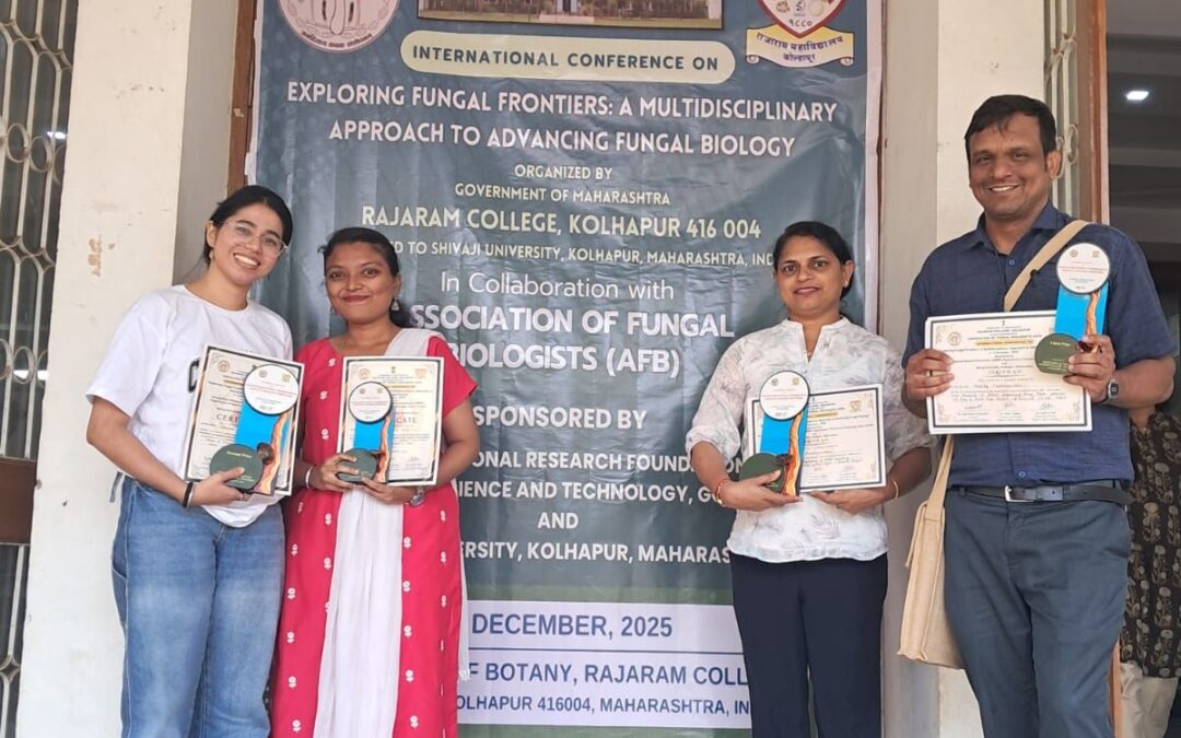 Congratulations to the students and faculty of Department of Botany for winning prizes at the Oral and Poster Presentations at the International Conference on Exploring Fungal Frontiers:A multidisciplinary approach to advancing fungal biology at th Rajaram College, Kolhapur, Maharashtra from 4th to 6th December 2025