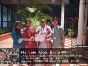SRUJANSANGAM 2026 by admin@dempe | Jan 5, 2026 | SA-25-26 | 0 comments On 5th January 2026, students participated in SRUJANSANGAM 2026, organised by the Goa Marathi Academy, Panaji, Goa. Photography Competition: • Mehul Fulari (SYBA) Rangoli Competition: • Harshita Lokapure (SYBSc) • Rashmi Naik (SYBSc) Submit a Comment Cancel replyYour email address will not be published. Required fields are marked *Comment * Name * Email * Website Save my name, email, and website in this browser for the next time I comment.
